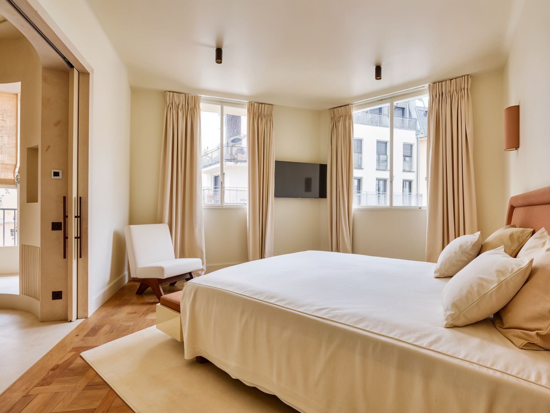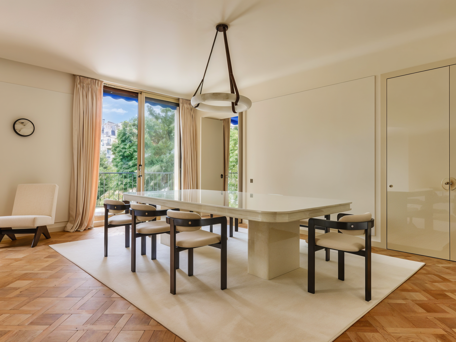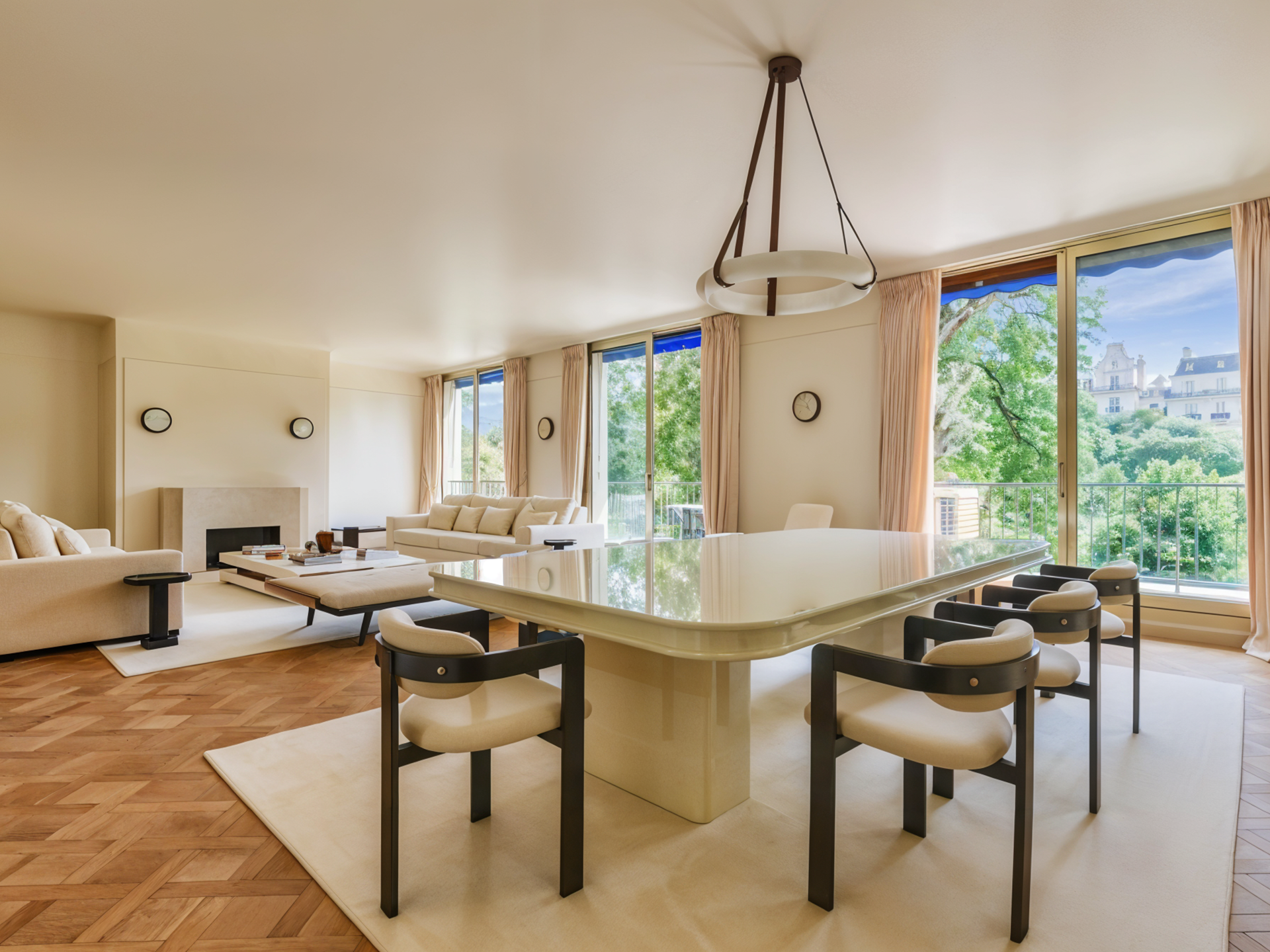 Discover the charm of Parisian living in this luxurious 525 m² apartment, fully renovated and elegantly designed by a renowned architect. Located on the top floor of an Art Nouveau-style building, this residence perfectly blends luxury and comfort in the heart of the 8th arrondissement of Paris.