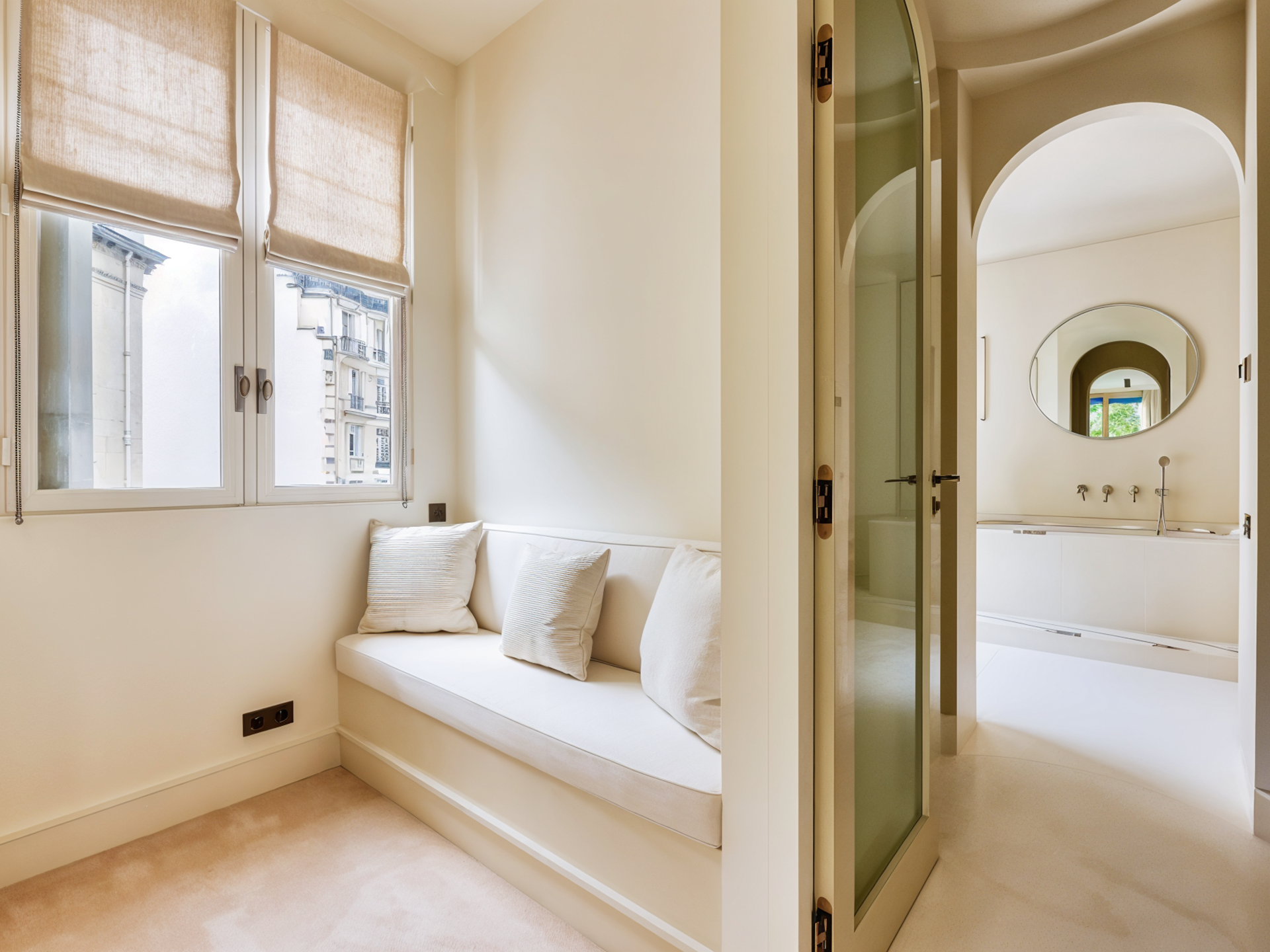 Situated at Place François 1er , one of the most prestigious locations in Paris, the apartment is surrounded by upscale cafés, gourmet restaurants, and the world’s most renowned fashion houses. It also offers easy access to famous Parisian landmarks and charming streets that radiate Parisian elegance.