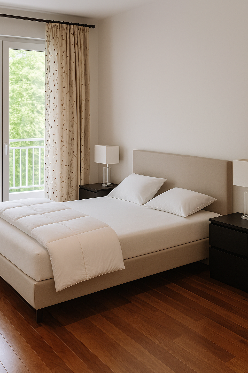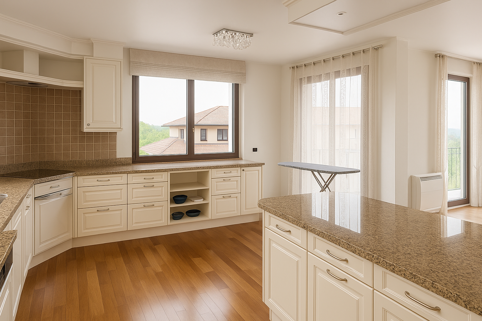 With a total surface of 170 sqm, the property features four well-designed bedrooms, including two master suites with en-suite bathrooms and two additional bedrooms with a shared bathroom—perfect for larger families or guests.
